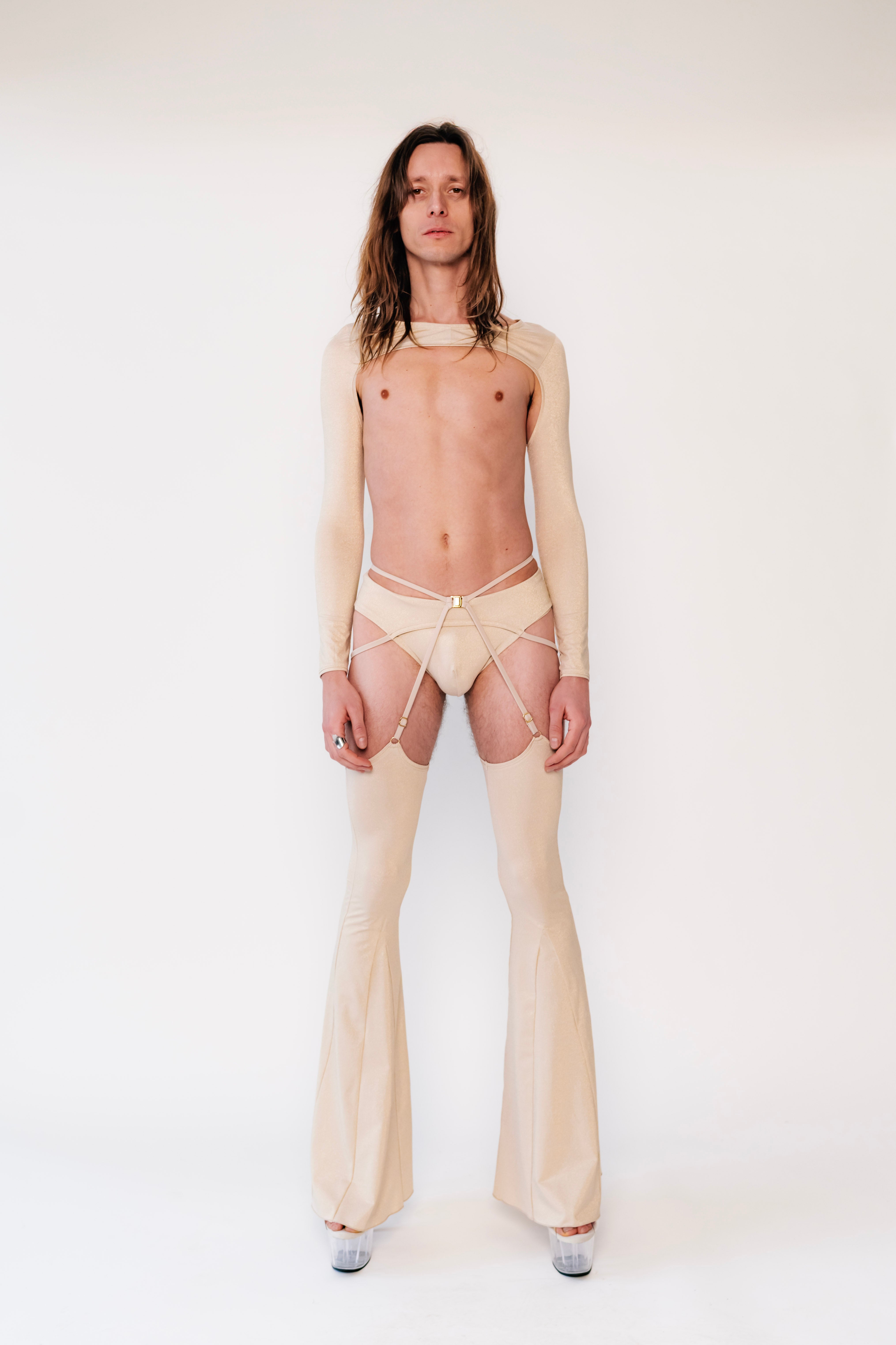 Champagne gold arm coverage designed for pole dancers who need full torso grip.