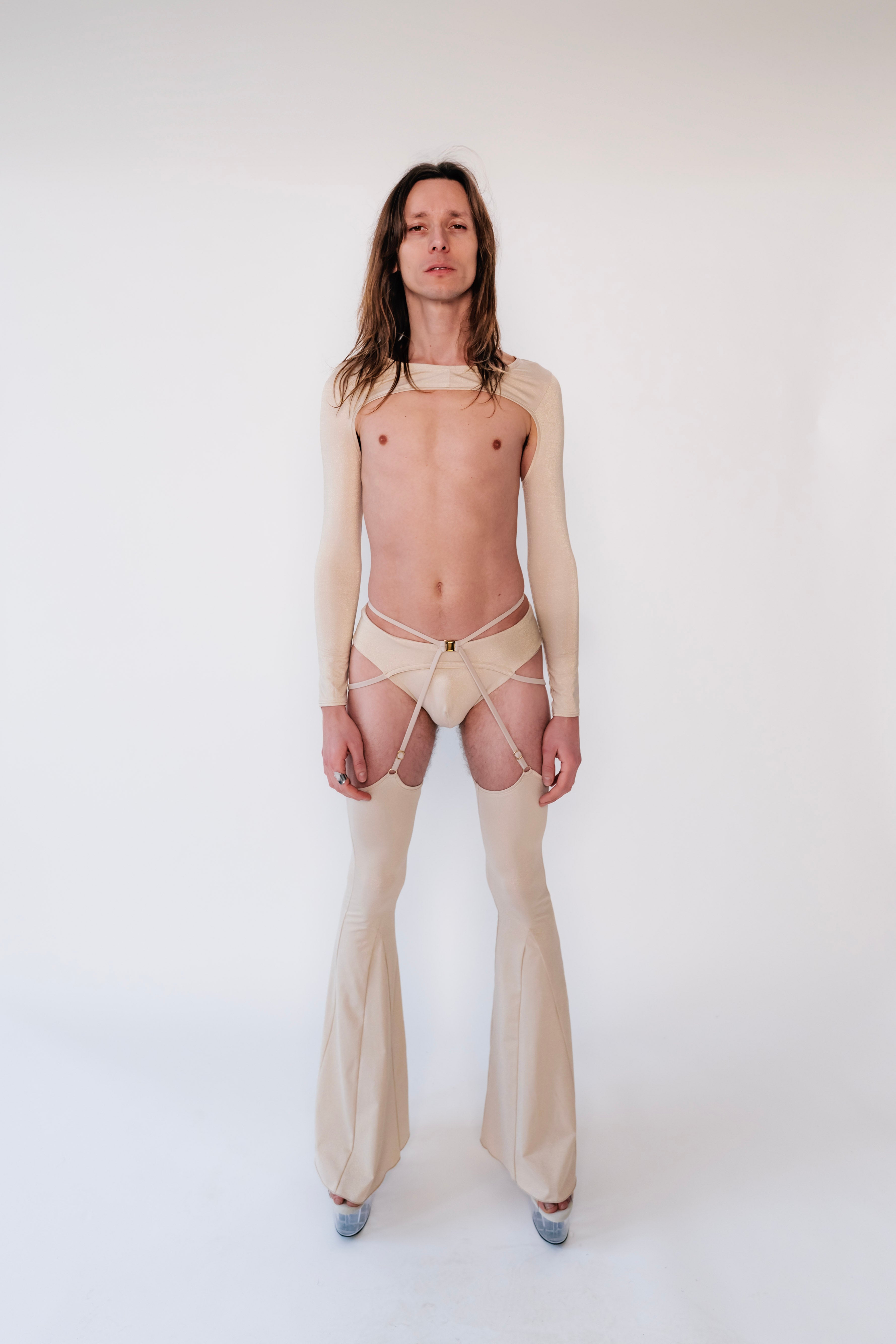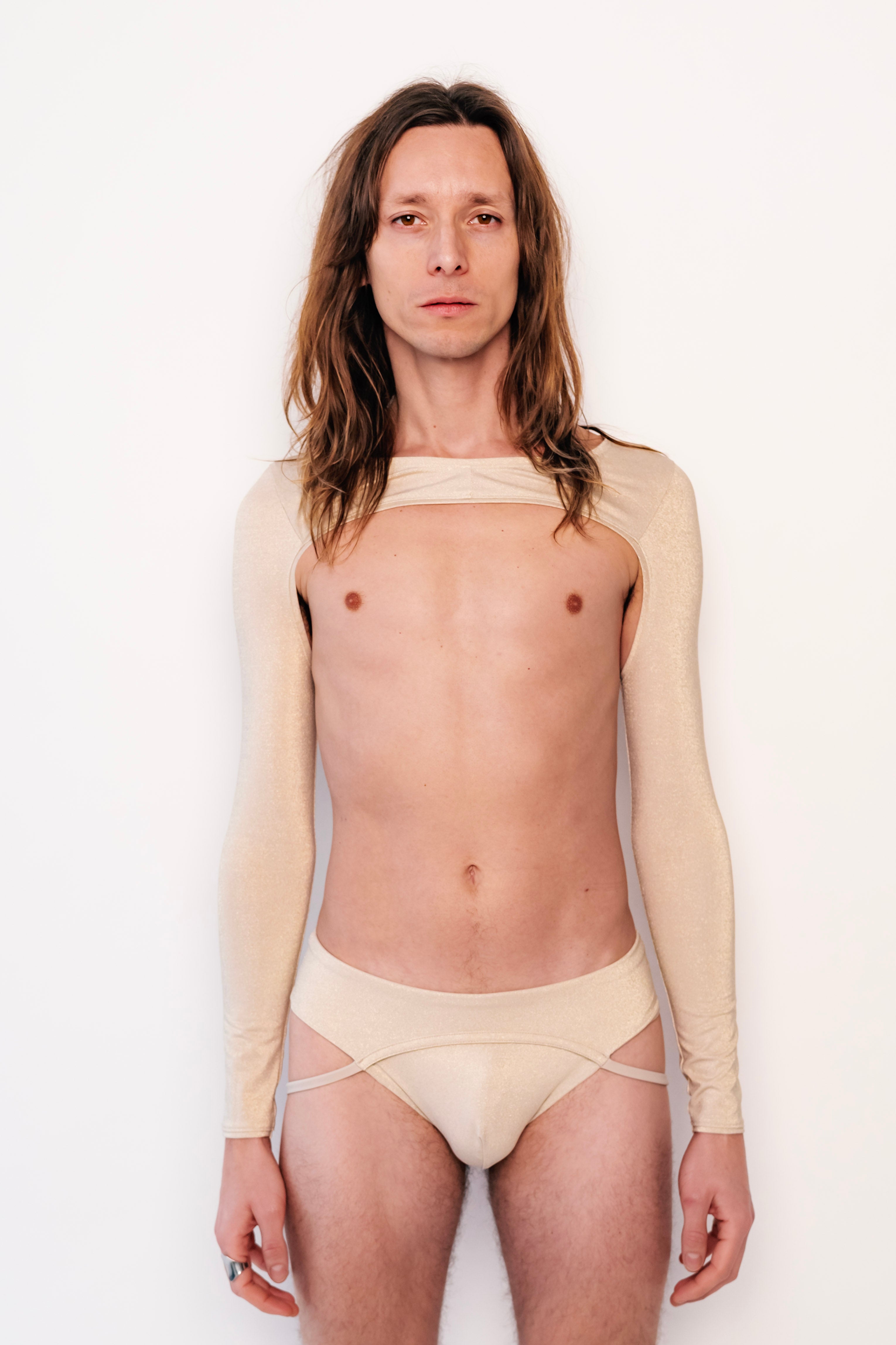 Champagne gold sparkle meets smart pole design. The Lauren Longsleeve Shrug delivers arm coverage without sacrificing torso grip. Strategic armpit cutouts and open torso keep pole contact points free while longsleeves add warmth and style.