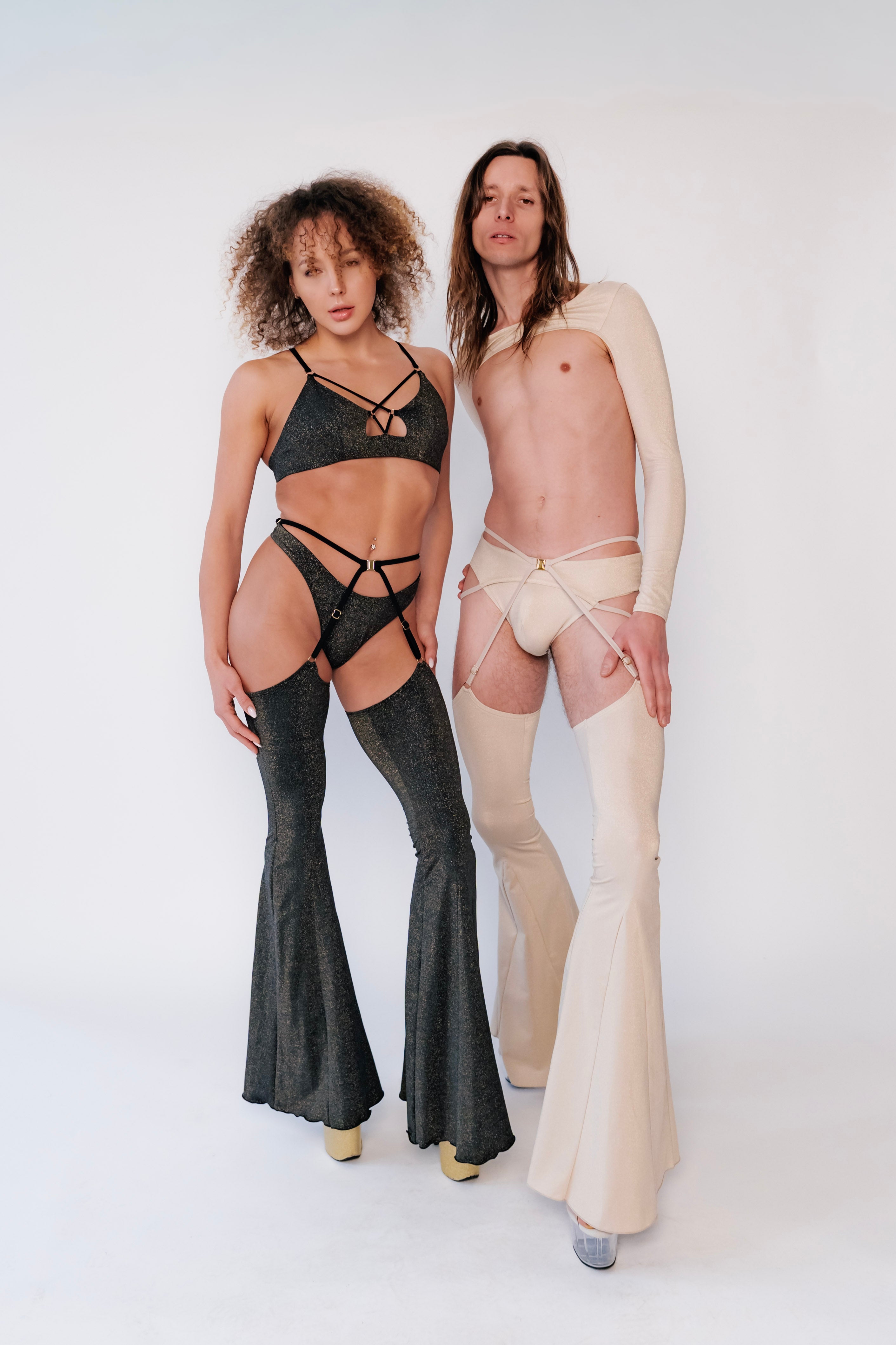 Sparkly lurex catches light during every spin. Soft viscose lining feels luxurious against skin. Cropped band design layers over any pole wear without interference. This is studio sophistication engineered for grip.