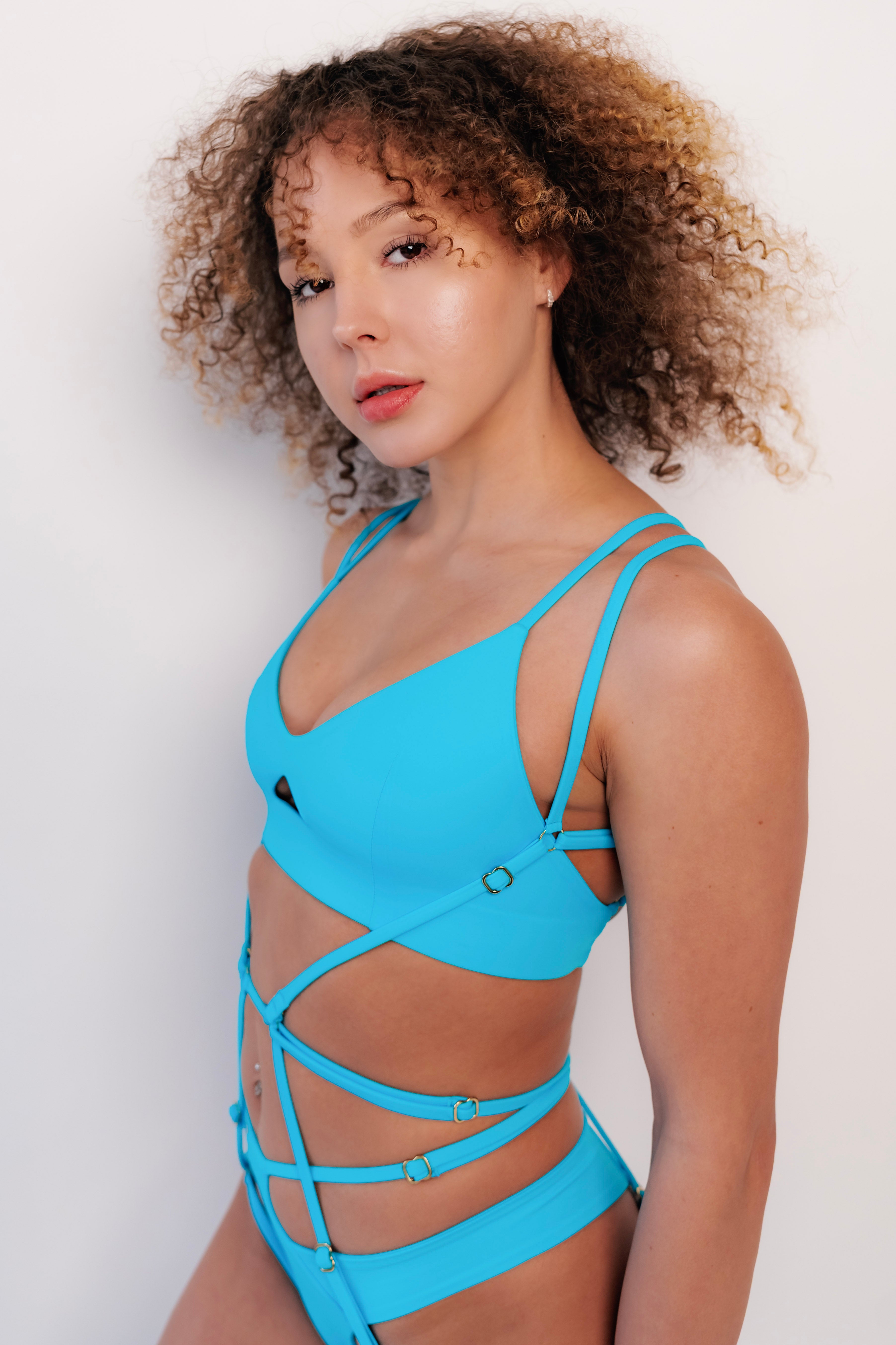 Amber Detachable Pole Dance Harness - 4-in-1 Convertible Body Harness Blue Lagoon